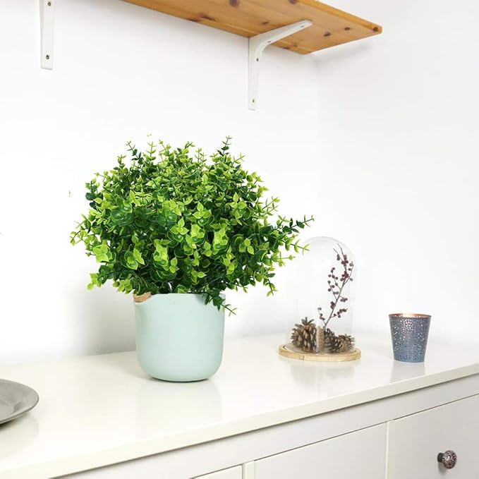 PASYOU Artificial Shrub, Fake Bush Simulation Eucalyptus Grass Greenery Leaves Plastic Plants Indoor Outdoor Outside Home Garden Office Bathroom Verandah Wedding Décor Decoration Planter Filler 8 Pcs