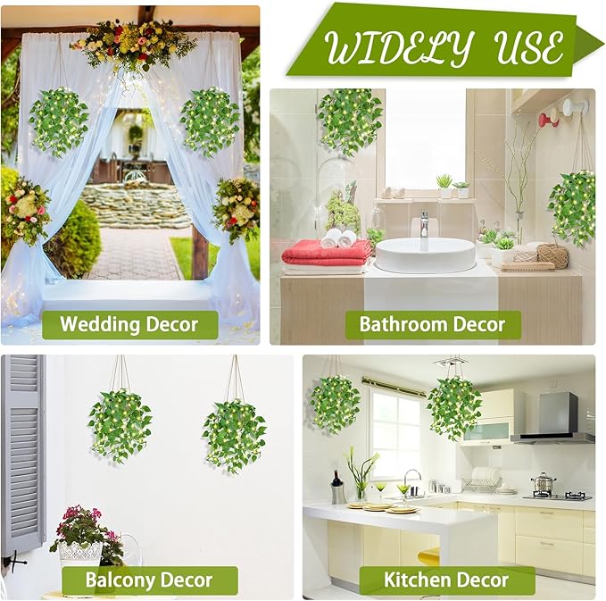 - đăIndoor Outdoor Green Decoră: Realistic hanging artificial plants can make your balcony super comfortable, very suitable for your balcony, living room, corridor, porch, cafe, staircase, and office, bedroom, bathroom, kitchen , Farmhouse etc,. A touch of green decoration adds the natural atmosphere of spring, summer, autumn and winter to the home. Lifelike green plants are the best choice for farm decoration and small space.