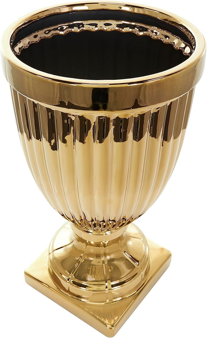- LARGE SIZE DECORATIVE CONTAINER FOR DISPLAY: The gold ceramic decorative jar measures 12L x 12W x 31.5H inches, and weighs 14.5 lbs