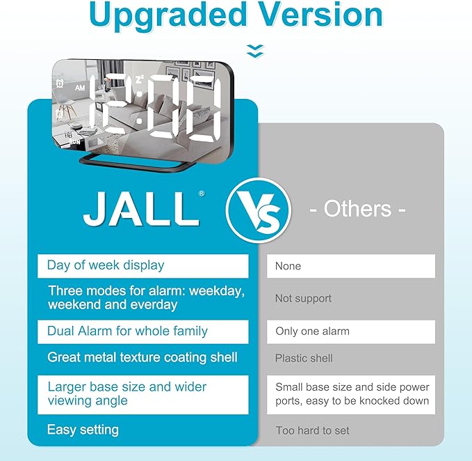 - 【Perfect Gift for Women】This mirror alarm clock is a perfect gift for women, sister, teen girl, daughter, mom. And its elegant appearance and practical function make it a thoughtful holiday gift. There are also multiple colors to choose from, meeting everyone's preferences.