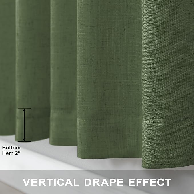 Olive Green Linen Curtains 84 Inch Length for Living Room 2 Panels Back Tab Pocket Moss Green Boho Drapes Light Filtering Sheer Cotton Neutral Aesthetic Army Green Boho Curtains for Bedroom 52x84 Long