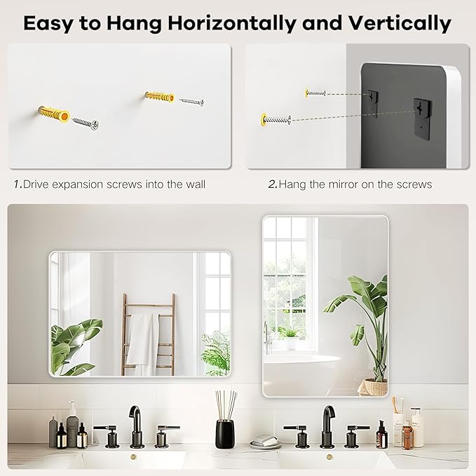 - Alumium Alloy Frame for Easy Hanging - The lightweight mirror is wear-resistant, sturdy, also won't fade, and the aluminum alloy makes the sink mirror less bulky that can be moved and installed easily, as well as quality. Meanwhile, the thick metal back plate can hang the ractangular mirror firmly on the wall