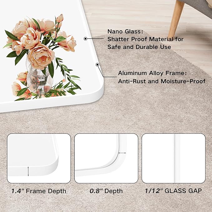 - Simple Installation & Shatter-proof Glass - The installation of wall mirrors is easy, which can be done in 2 steps according to the instructions, and you can hang on the framed mirror vertically or horizontally. The glass is made of nano glass, which is not easy to shatter and no distortion when use