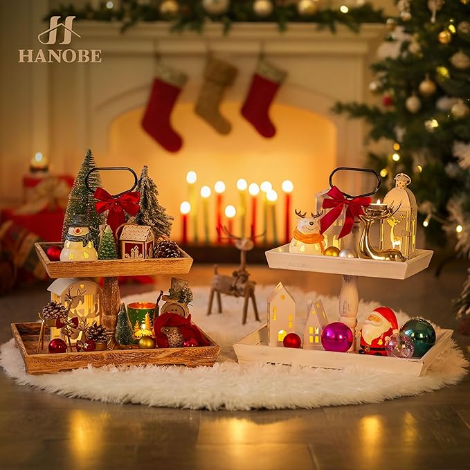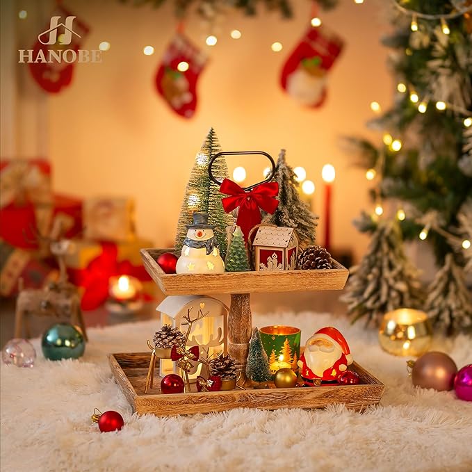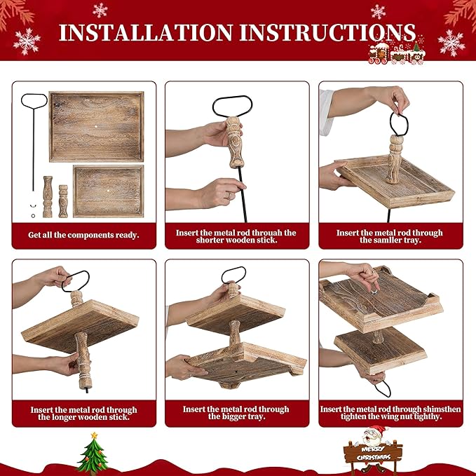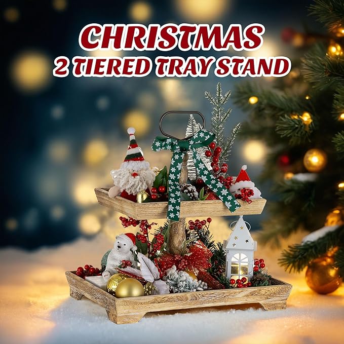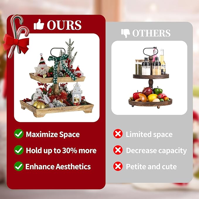 - Versatile Celebration Hub : Our 2-tiered tray decor is the heart of every celebration. Whether it's Valentine's Day or Thanksgiving, this farmhouse tiered tray stand is your go-to for seasonal charm. It's the centerpiece that adapts to every festive mood, making your decor pop with rustic appeal