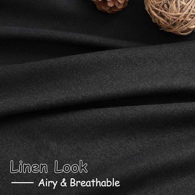 Nanspring Black Boho Curtains for Bedroom Back Tab Rod Pocket Semi Sheer Linen Curtains 90 Inches Long 2 Panel Set Light Filtering Neutral Farmhouse Lightweight Drapes for Living Room 40x90 Inches