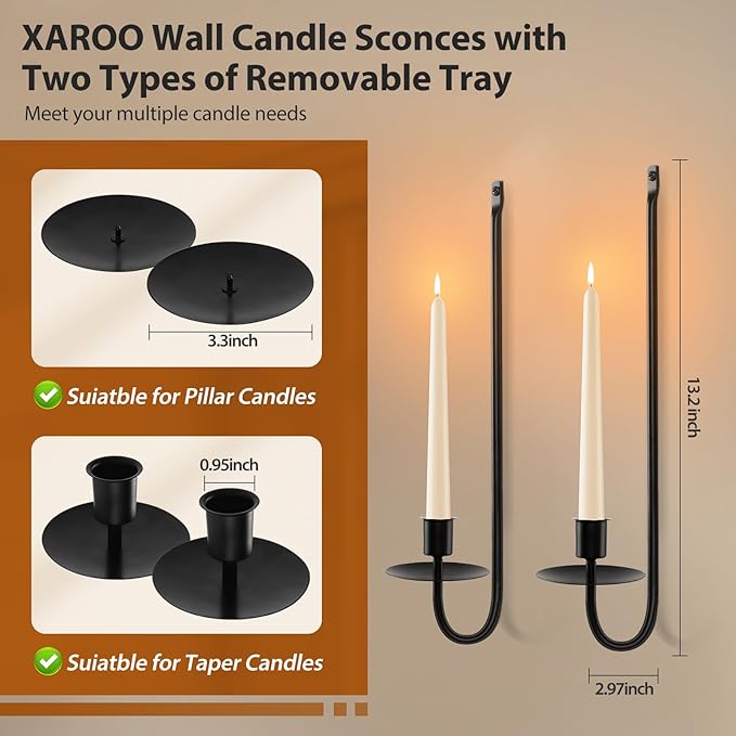 - ๐ป๐จ๐ท๐ฌ๐น & ๐ท๐ฐ๐ณ๐ณ๐จ๐น ๐ช๐จ๐ต๐ซ๐ณ๐ฌ ๐ฏ๐ถ๐ณ๐ซ๐ฌ๐น: The candle sconce in 13.2 inches length and 2.97 width, comes with two types of removable disk at the bottoms( taper holder and bowl holder), meet your multiple candle needs