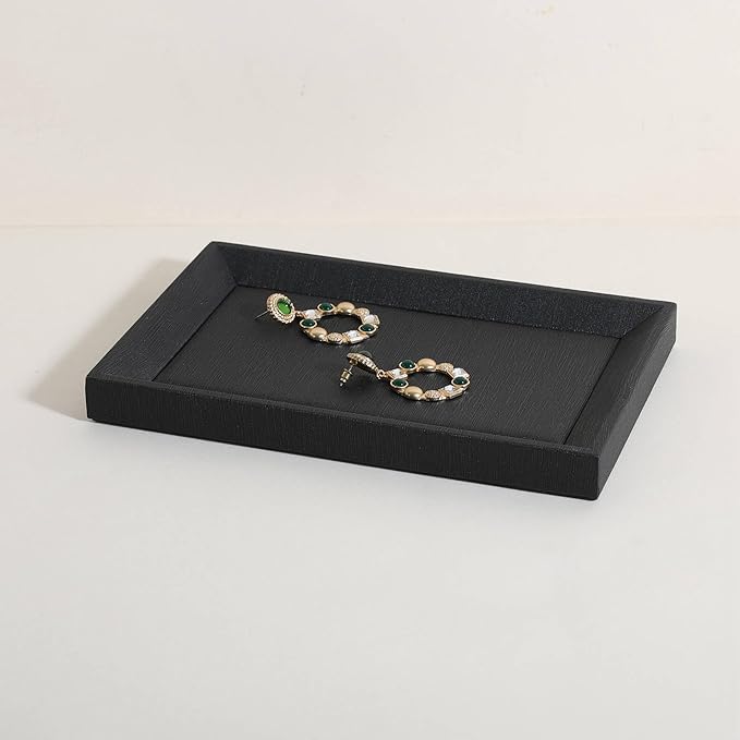 GemeShou Gemehou faux PU leather Jewelry Viewing Tray, Stackable Jewelry Plate, Rectangle Jewelry showcase, Empty Jewelry tray for Necklace Bracelet Ring Earring Watch (Black-Small, 9.1 x 5.9 in)