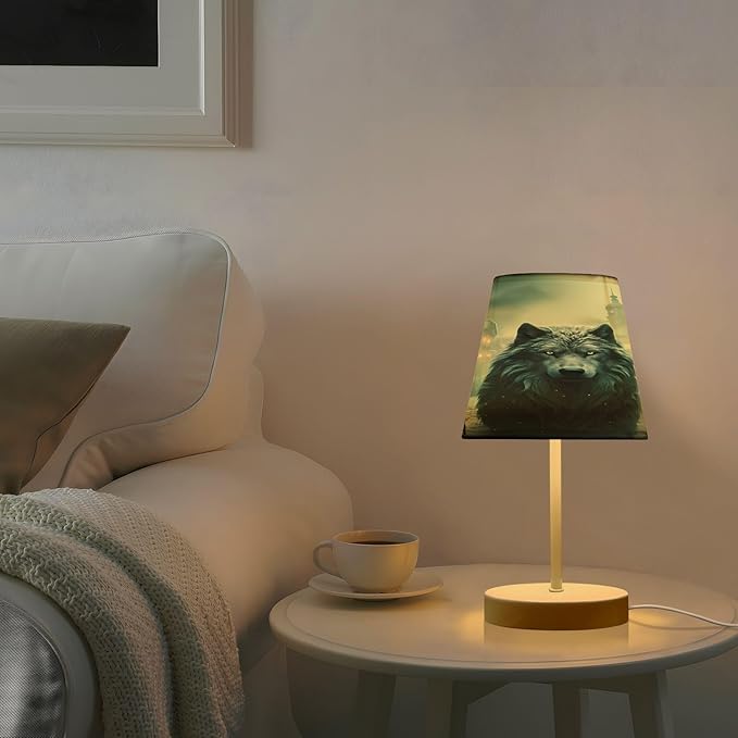 ALAZA Wolf Cityscape Decor Bedside Table Lamp with USB Port 3 Color Temperatures LED Desk Lamp for Bedroom Office S