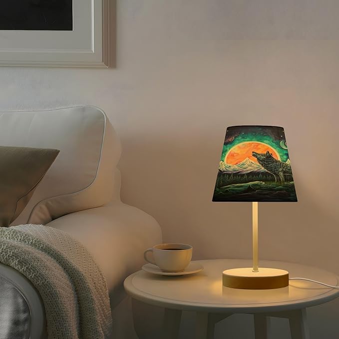 ALAZA Moon Night Mountain Wolf Decor Bedside Table Lamp with USB Port 3 Color Temperatures LED Desk Lamp for Bedroom Office S