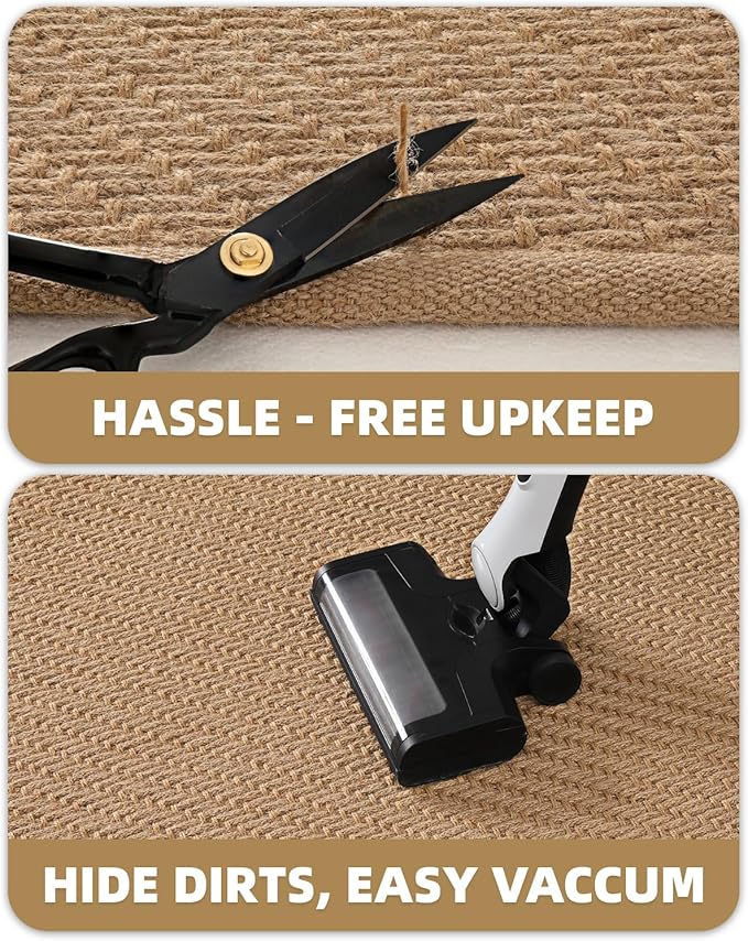 - Users Friendly: Crafted from natural jute fibers --- preserve the original texture and color of jute, providing a safe and natural living environment where your family, pets, and kids can enjoy their time without worry