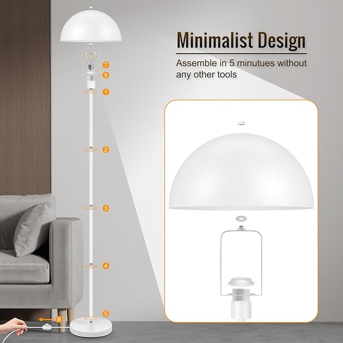 - 💖Industrial Floor Lamp for Bedroom - This stand up lamp with an elegant dome curve, illuminating the soft reflection lighting via the inner lampshade. So that it will offer the elegant and accent lighting for your reading, playing, relaxing. The unique design can definitely add a sense of fashion and art to your home. Its warm lighting and elegant design can match various styles of home furnishings, such as modern mid-century, contemporary, traditional, farmhouse