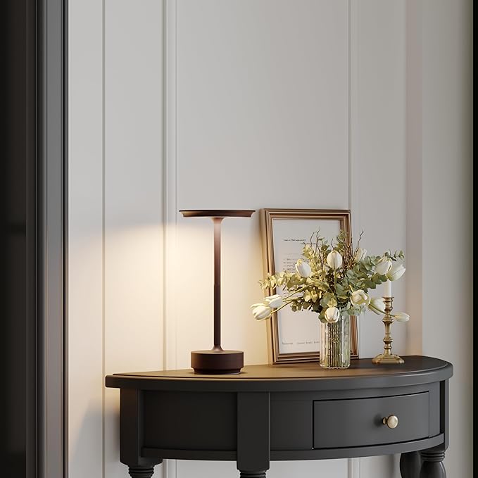 Rechargeable Cordless Table Lamp,LED Battery Operated Portable Table Light with 3 Color Stepless Dimming, Memory Function - IP54 Waterproof for Outdoor, Restaurant, Patio, BBQ(Rust)
