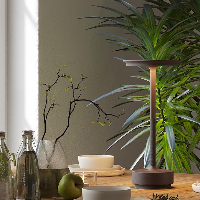 - LONG LASTING 5000 mAH BATTERY: Cordless rechargeable LED table lamp with C-type fast charging provides 8-40 hours of 3-level brightness infinitely variable lighting. Perfect for outdoor camping, restaurant and patio use, no outlet required.