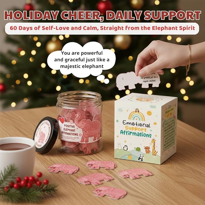 - Emotional Support & Positivity Features 60 affirmation cards with emotional support elephant themes, offering stress relief, encouragement, and mindfulness; perfect as positive elephant jar or mens birthday gift ideas.