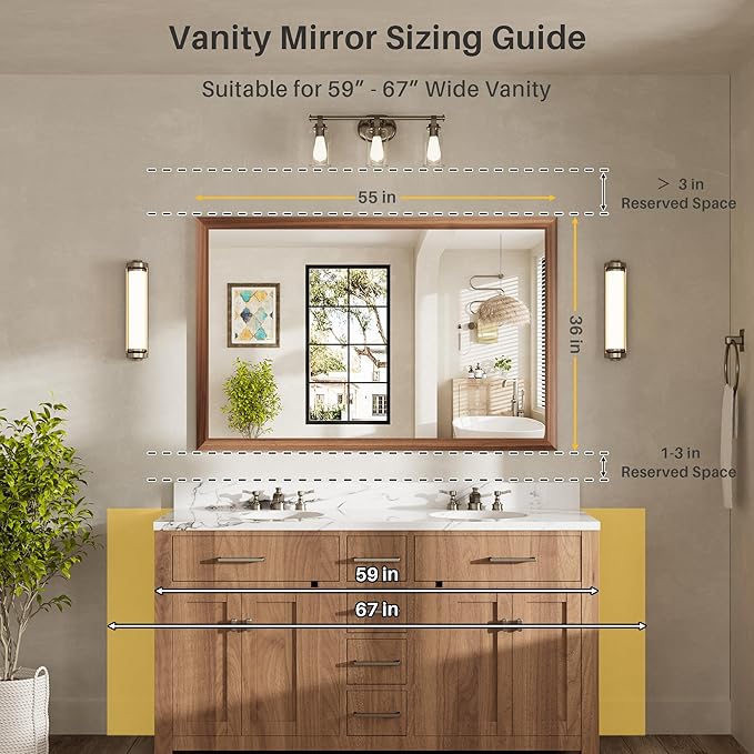 55x36 Inch Bathroom Mirror for Wall, Anti-Rust Walnut Wood Grain Metal Framed Bathroom Mirrors for Over Sink,Rectangler Mirrors for Bathroom Vanity, Farmhouse, Bedroom, Living Room, Entryway Decor