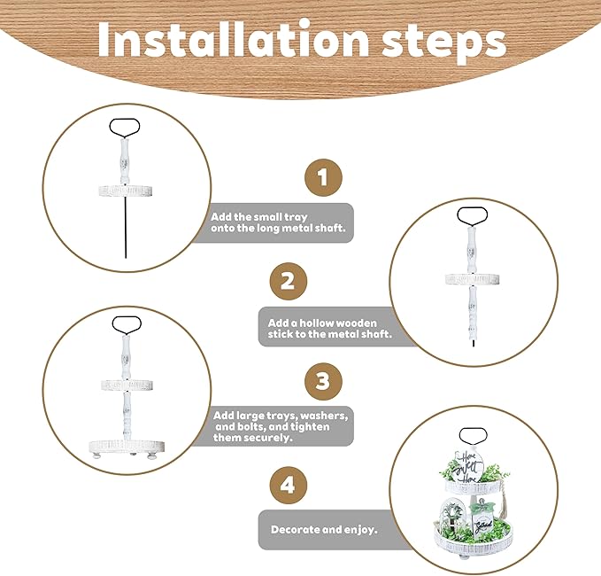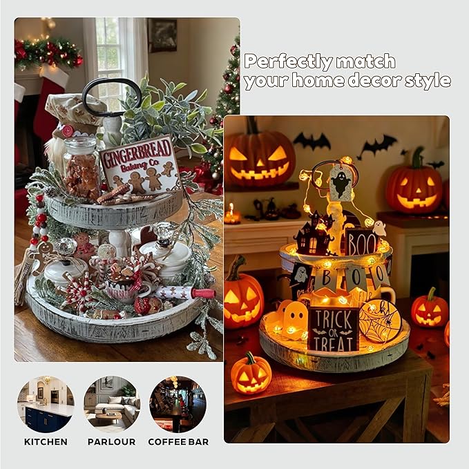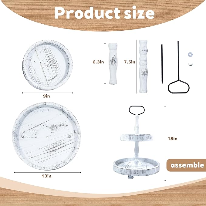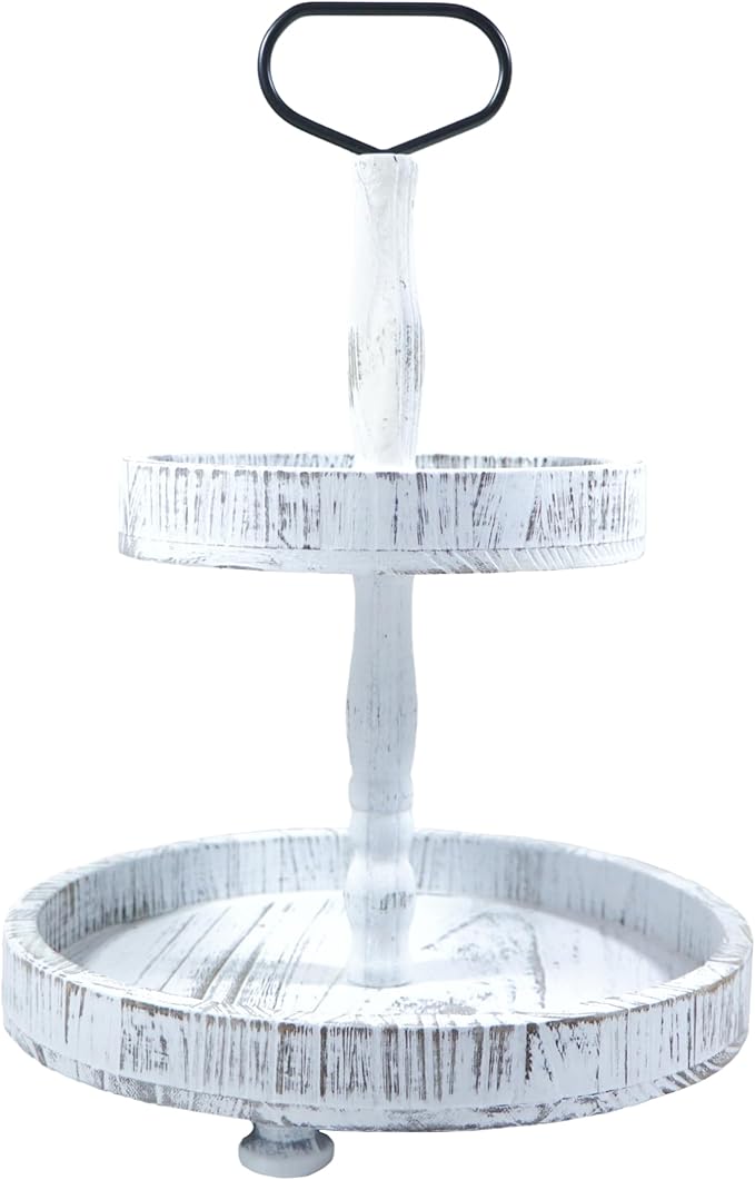 - Handcrafted Farmhouse Charm; Made from premium solid wood with a distressed white finish, this 2-tier tray exudes rustic elegance and brings a fresh, natural vibe to any room’s decor
