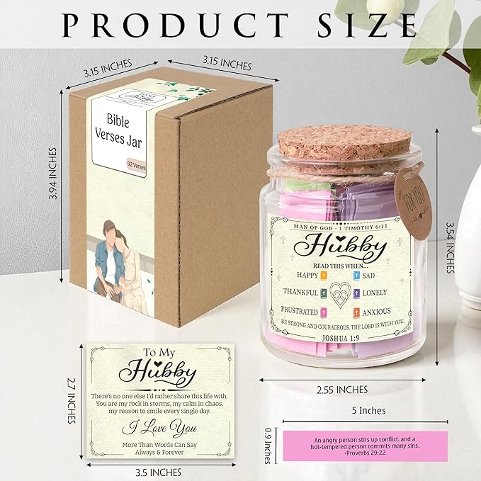 - Daily Encouragement from God’s Word This keepsake jar helps your husband stay grounded in scripture and feel loved, supported, and spiritually connected—one verse at a time.