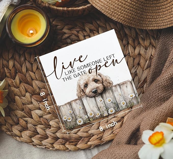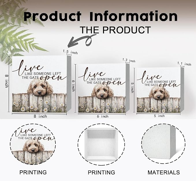 Goldendoodle Wooden Box Sign, Rustic Farmhouse Live Like Someone Left the Gate Open Signs for Home Decor,Farm Dog Office Kitchen Bedroom Decor,Goldendoodle Gifts for Kids Women Men,8x8