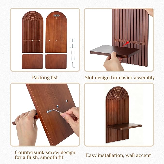 - 3D Arch Design: This 3D arched wall candle holder combines walnut wood colors, blending vintage charm with modern minimalism. Its design evokes a sense of nature and tranquility, adding rustic warmth to any space;