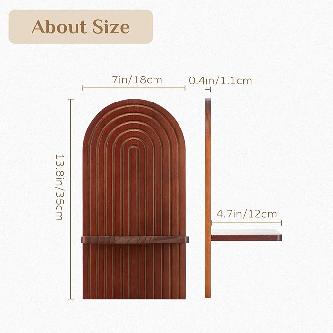 - Sturdy Solid Wood: Our solid wood arched wall-mounted candle sconce is crafted from sturdy pine wood, featuring a smooth finish with natural wood tones. It measures 13.8 inch in height, 7 inch in width, with a board length of 7 inch, a width of 4.7 inch, and a thickness of 0.4 inch;