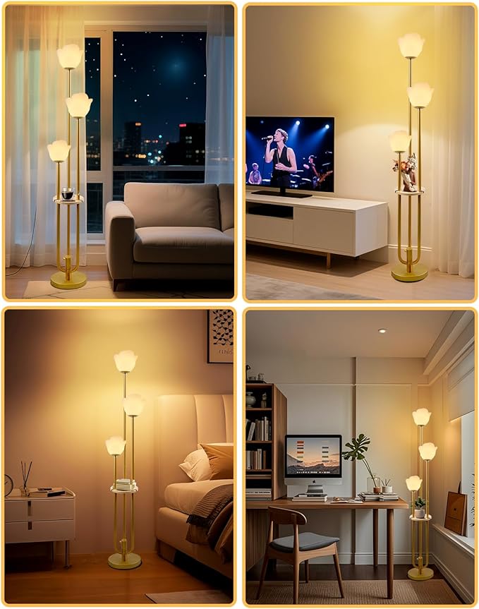 - Unique & Exquisite Modern Design ✨ This 63-inch gold floor lamp boasts a mid-century inspired silhouette with three flower lights artfully arranged on a U-shaped triple metal frame. The elegant minimalist structure blends seamlessly with contemporary, vintage, or industrial decor, adding a touch of sophistication to living rooms, bedrooms, or offices.