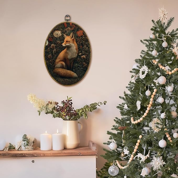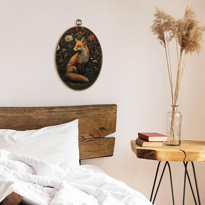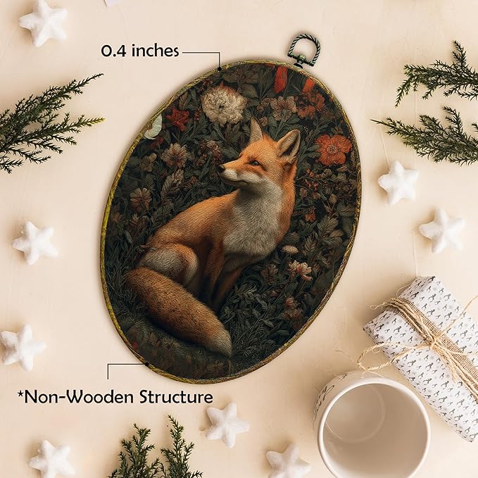 XFCICRLJ Vintage Moody Fox Wall Art Decor, Dark Cottagecore Botanical Fox Oval Canvas Prints Framed, Dark Academia Forest Fox Wall Art Decorations for Home Bedroom Living Room Decor, 11x8.5 Inch