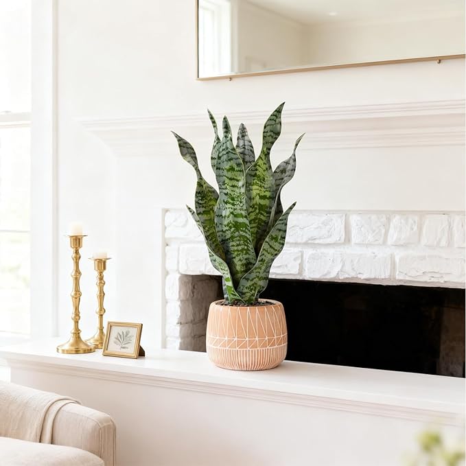 - Material: Fake snake-shaped plant is made of durable high quality polyester material, which is safe and easy to clean and not easy to fade. The bottom is a concrete pot,features unique patterns and a retro effect,there are faux plants and small stones in the flowerpot,which makes the whole artificial Sansevieria brighter,more vivid,and natural and beautiful.