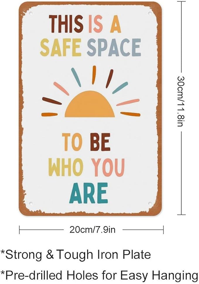 Safe Space To Be Who You Are Metal Sign Poster 12x8 Inch Wall Decor Minimalist Boho Sun Inclusive Affirmation Therapy Office Therapist Counseling Classroom Dorm Office Gift