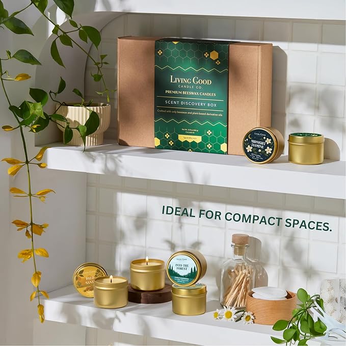 6 Scents Discovery Box – Pure Beeswax Candles for Every Mood – Clean Burning & Non-Toxic for Home, Aromatherapy, Relaxation & Stress Relief – Gift Idea for Women & Candle Lovers (2 oz Each)