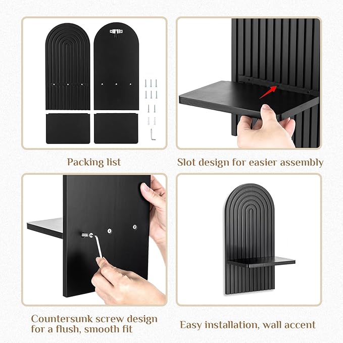 - 3D Arch Design: This 3D wood arched wall candle holder combines modern black colors, blending charm with modern minimalism. Its design evokes a sense of nature and tranquility, adding rustic warmth to any space;